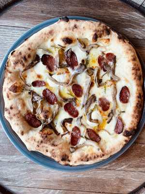 mozzarella fior di latte / kiełbaski Bocconcicni / scamorza affumicata / boczniaki z czosnkiem i chili / świeży rozmaryn